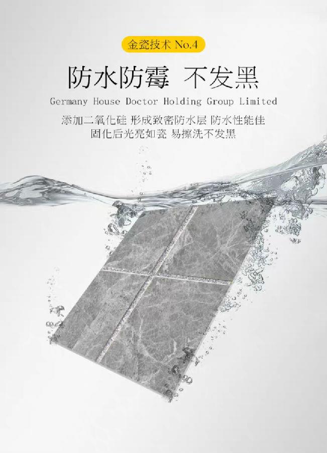 2、新視覺:它具有光澤,顏色豐富自然細膩,如金色、銀色、珠光色等,而白色、黑色色度明顯高於白水泥、彩色填縫劑,給牆麵帶來更好的整體效果,因此裝飾性大大強於白水泥、彩色填縫劑。並且其凝固後,表麵光滑如瓷,可以和瓷磚一起擦洗,具有抗滲透防水的特性,可以做到真正的瓷磚縫隙“永不變黑”。