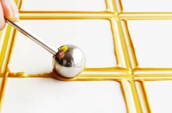 持續3、4、5步,直到把所有水平線刮平美縫劑;美縫劑表麵大約20分鍾左右凝固;感覺美縫劑凝固後可以做所有的垂直線;